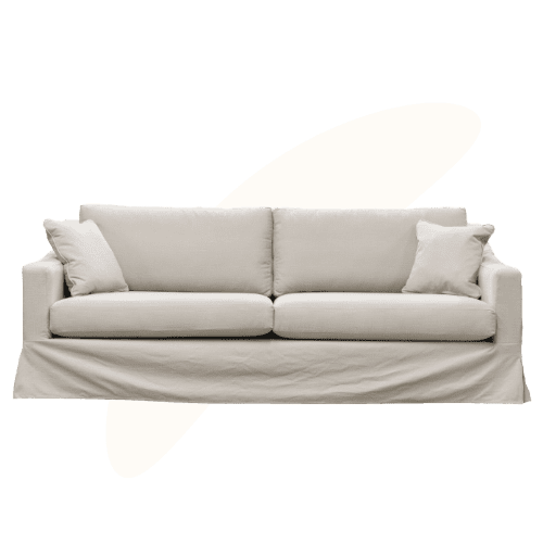 Elegant sloped arms, a low streamlined back, and self-seamed cushions create a relaxed beach house feel. Available in an array of colours, the natural composition of the fabric is both durable and family-friendly.