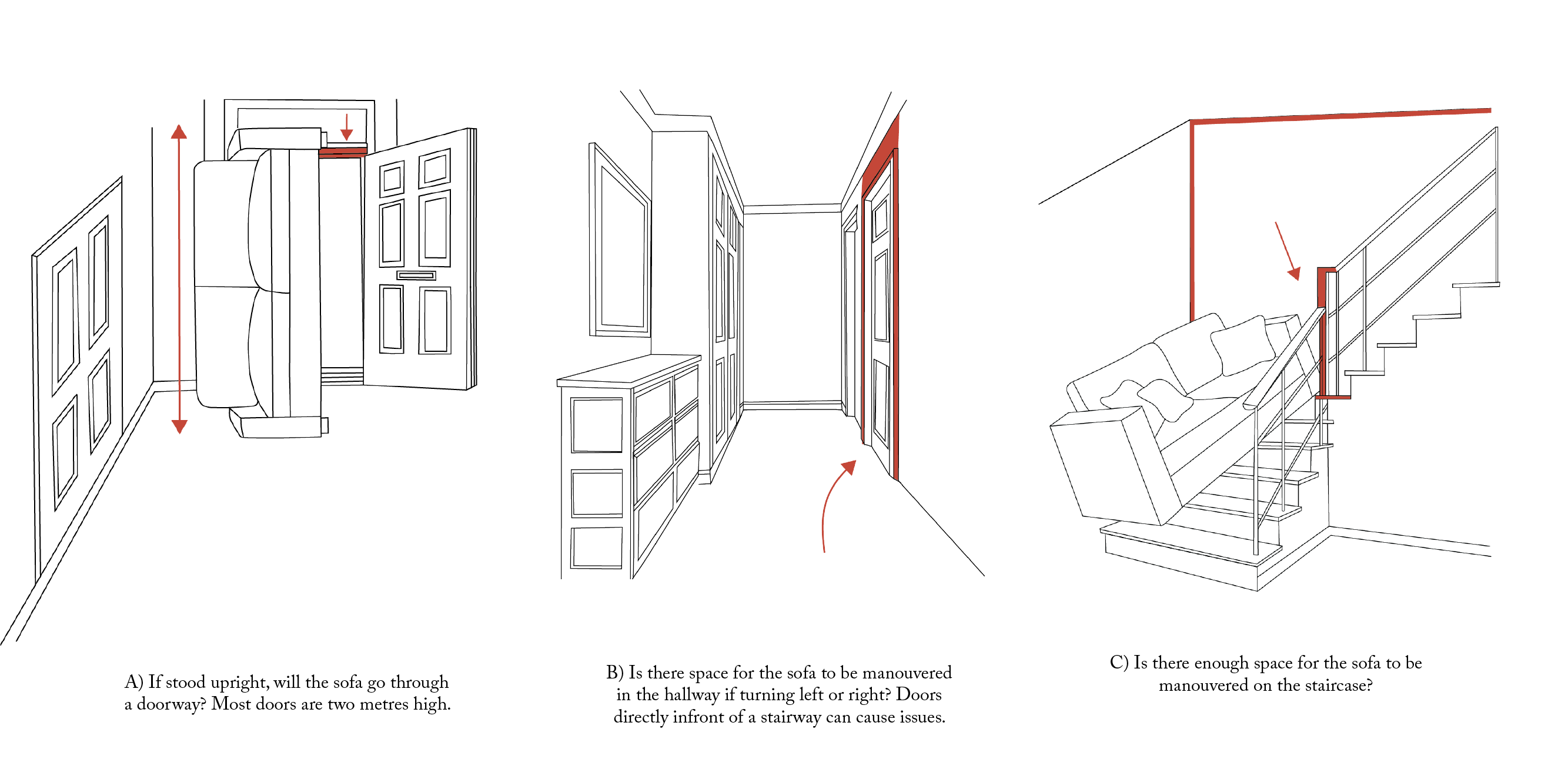 - Is there room to manoeuvre sofas through hallways and access areas?